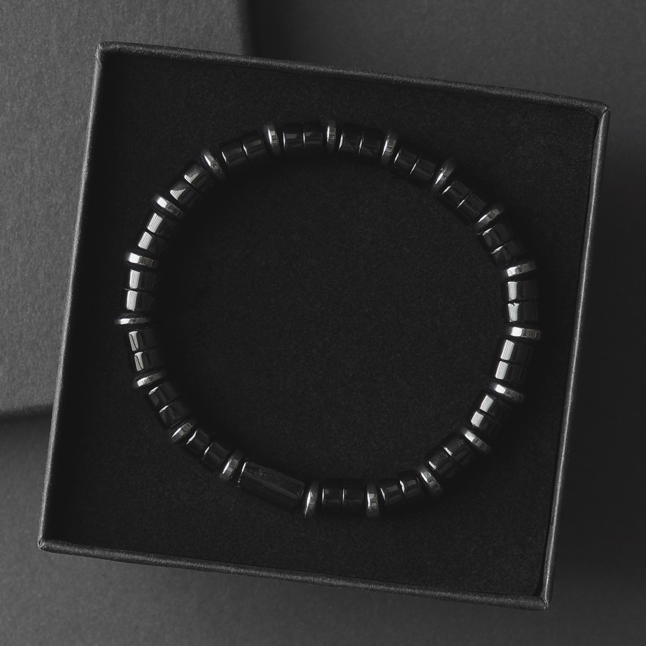- przekładki z hematytu w kolorze grafitowym,