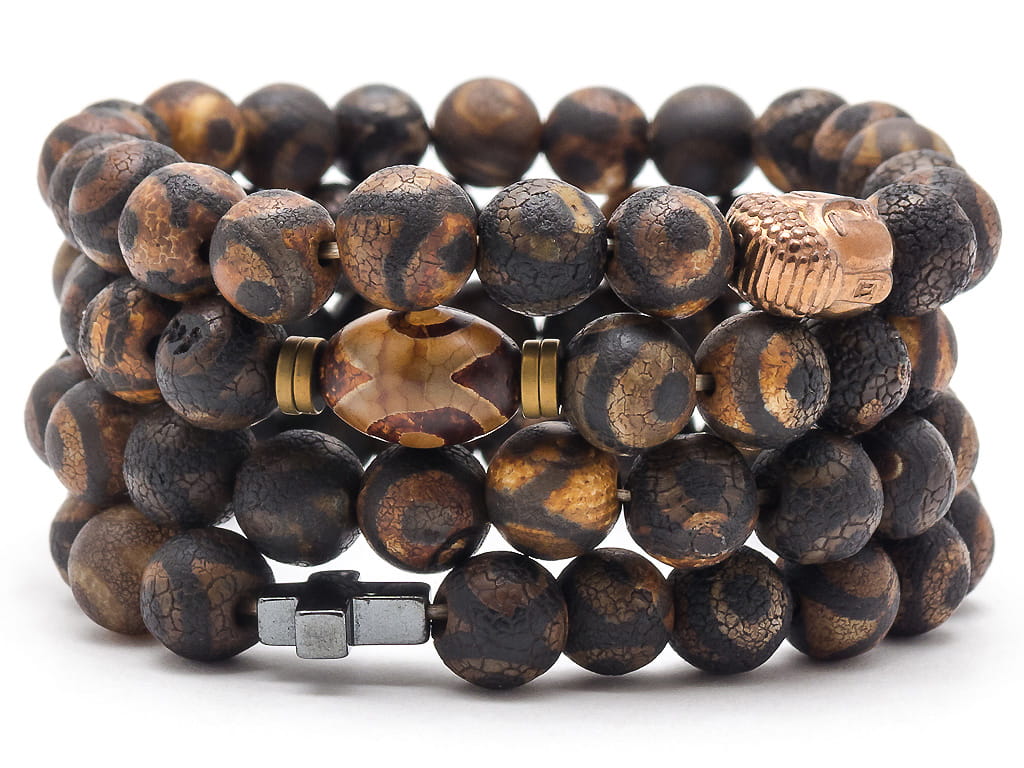 Bransoletka męska z kamieni agat tybetański brązowy at011