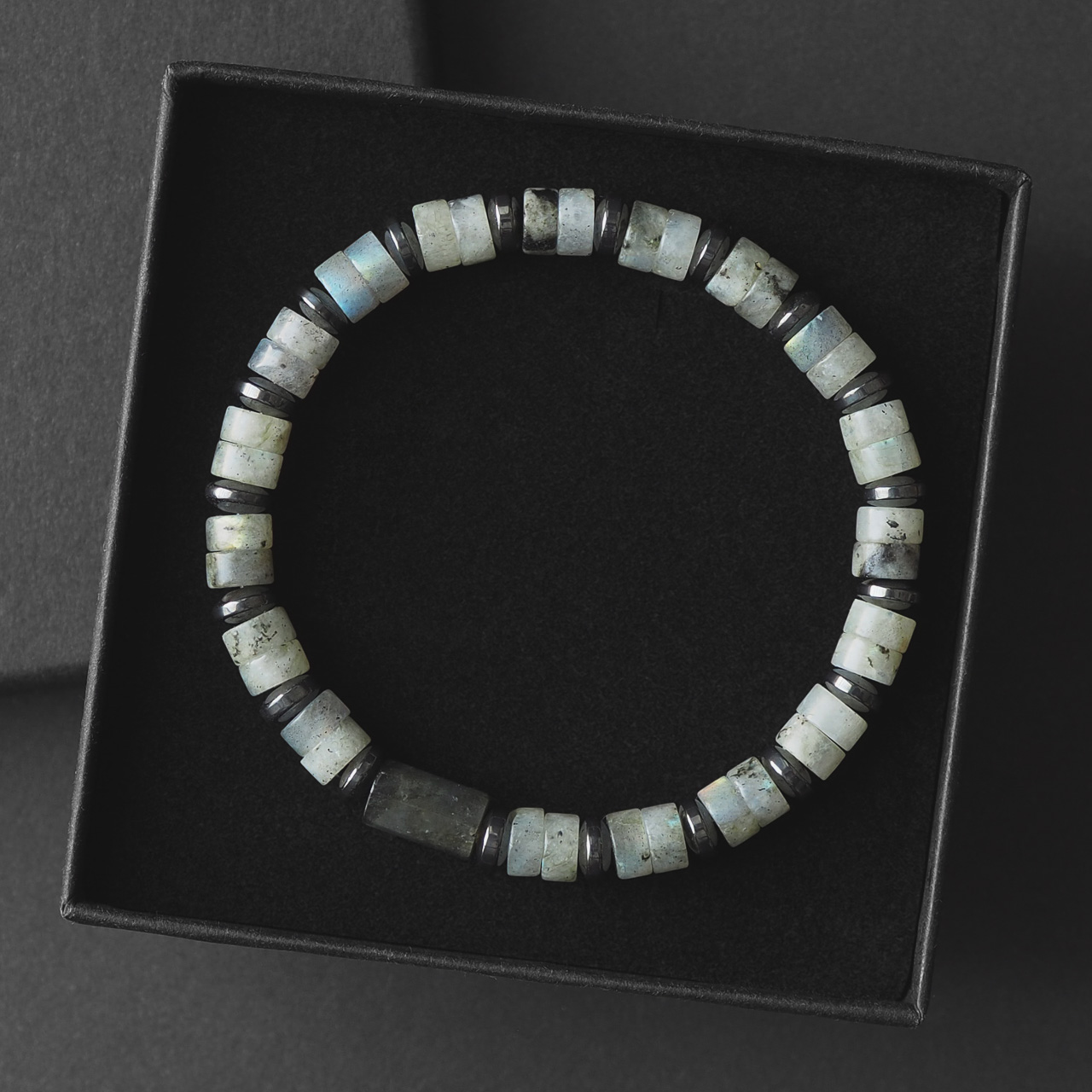 Bransoletka męska z kamieni labradoryt hematyt lbh01