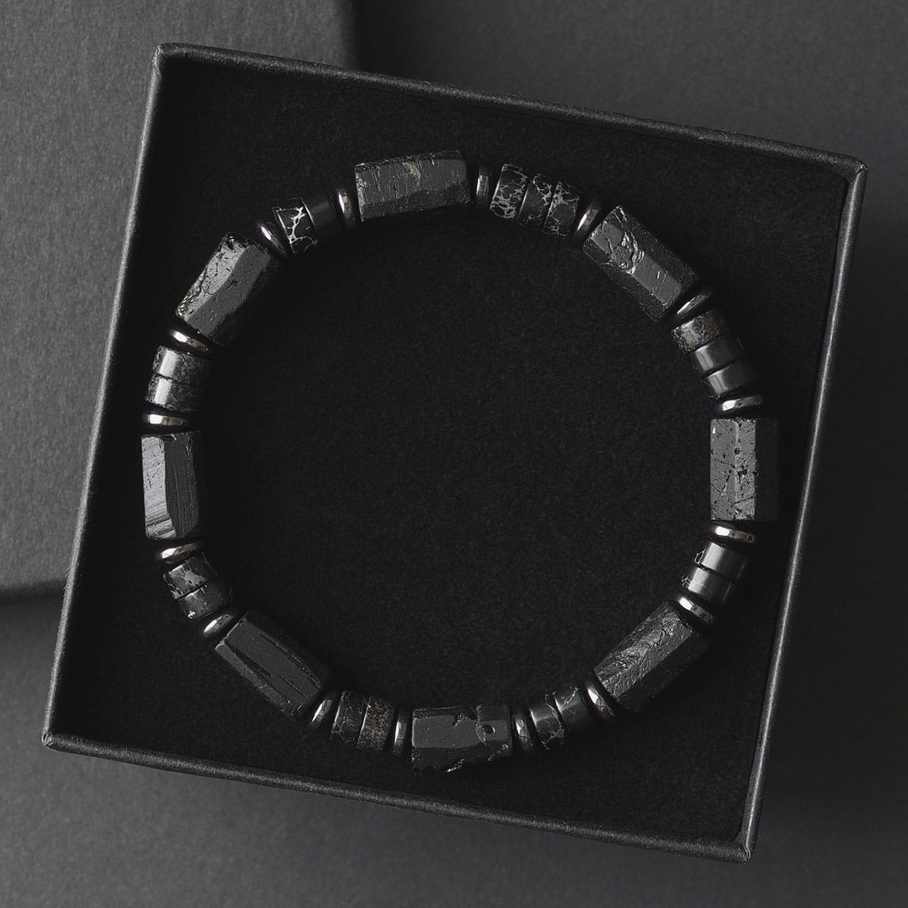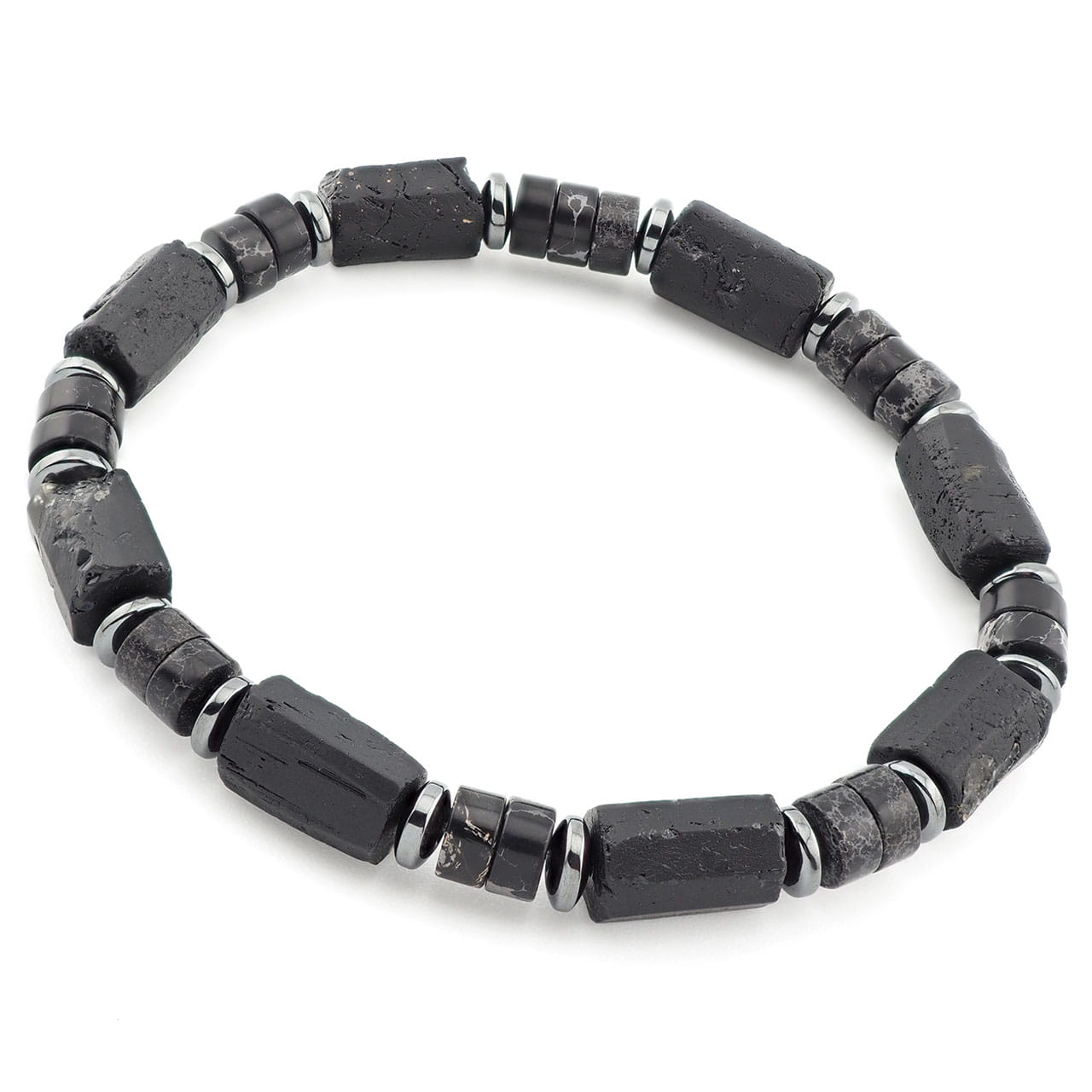 Bransoletka dla Niego z surowego kamienia turmalinu i krążków jaspisu