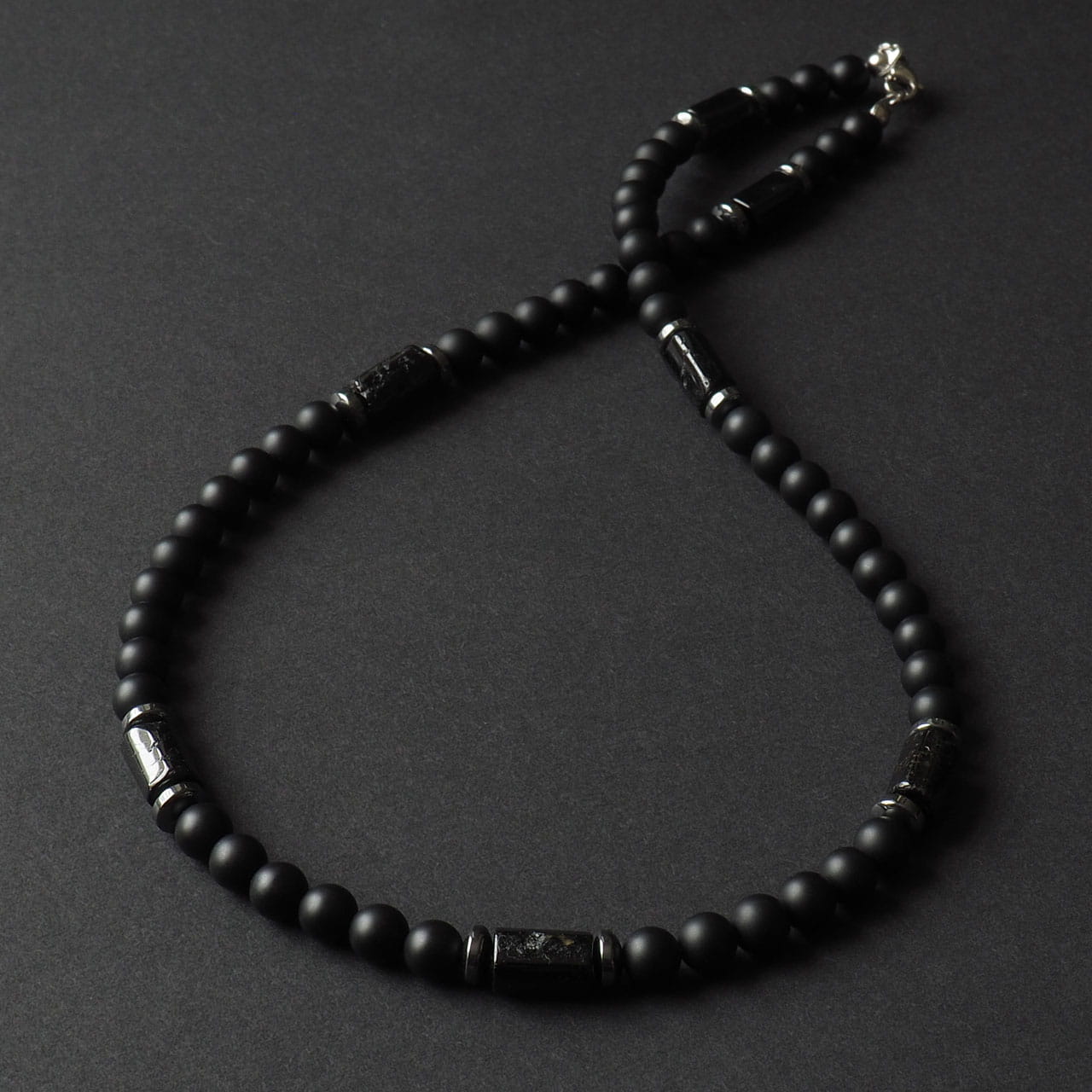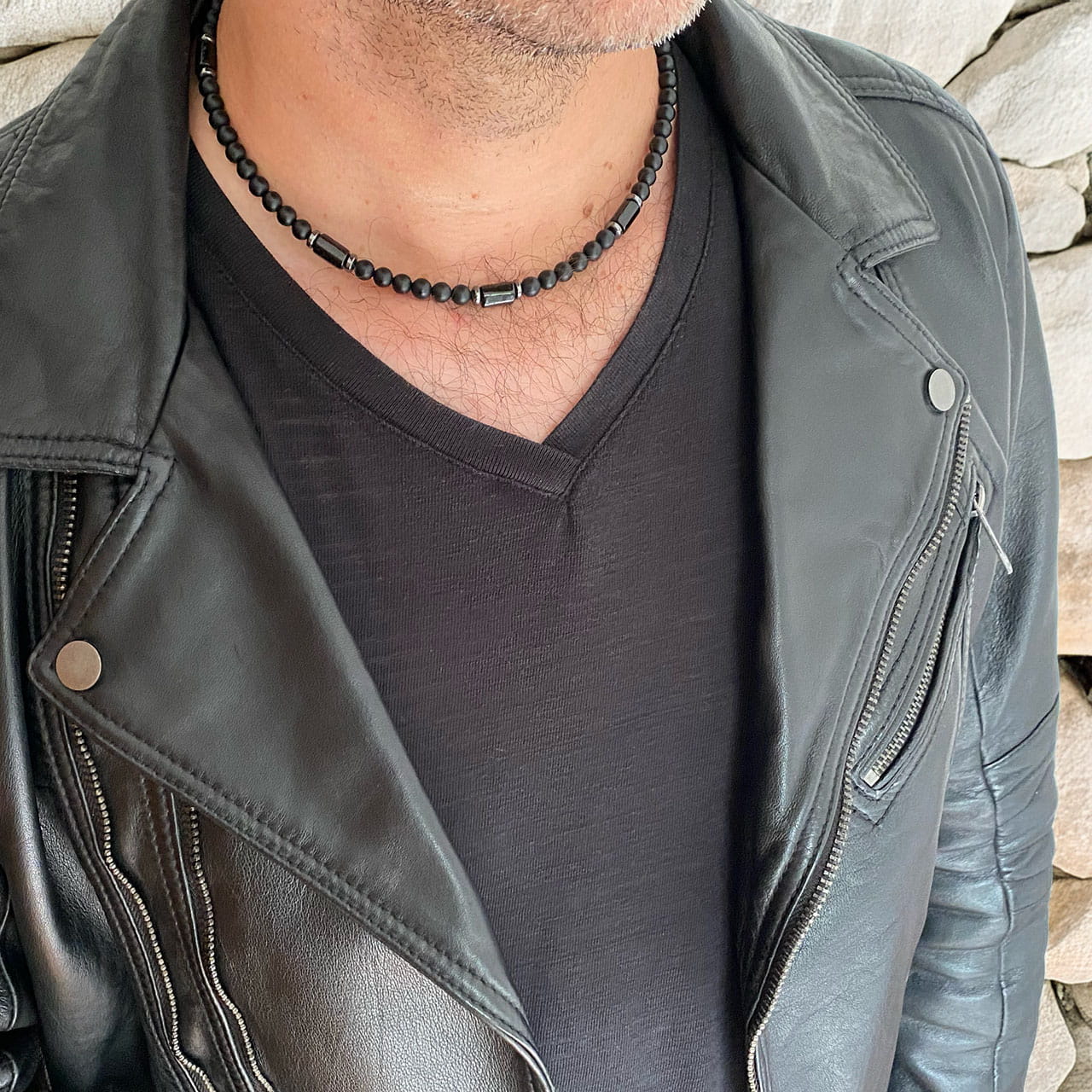 Koraliki męskie na szyję z kamieniami onyksu i turmalinu