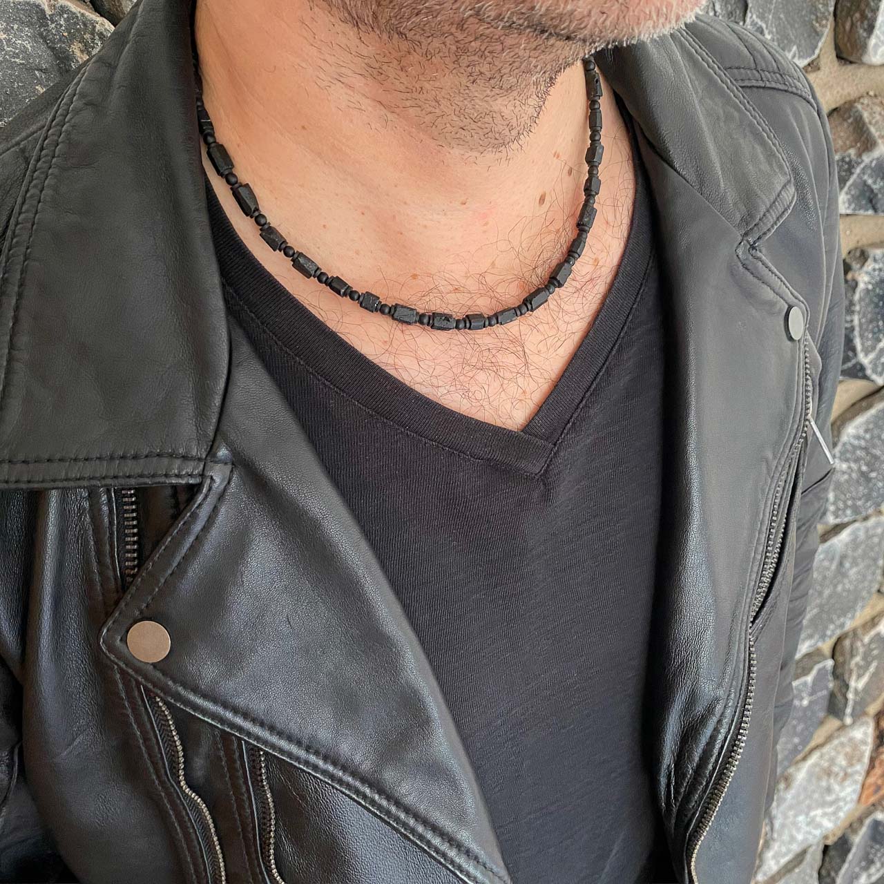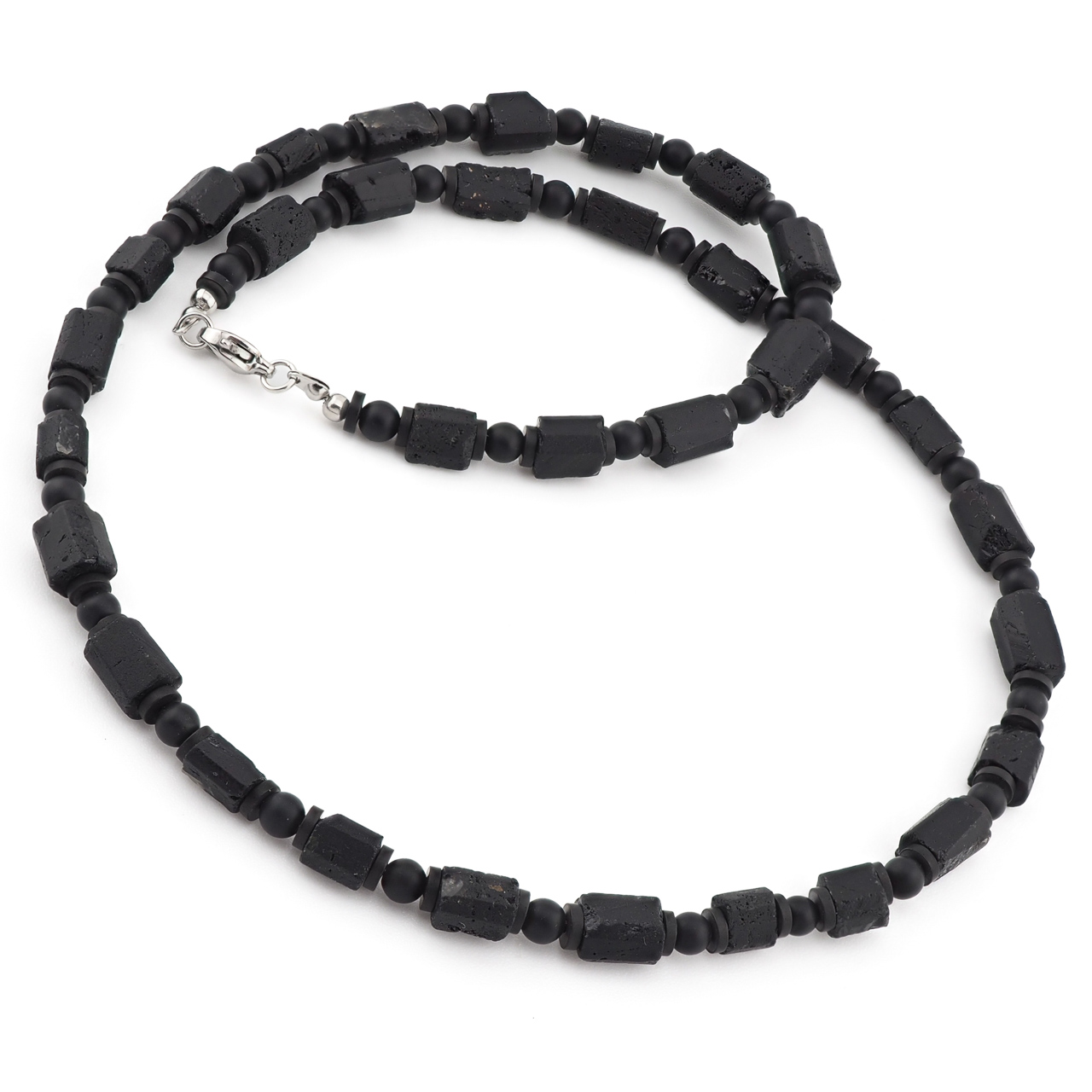 Męski naszyjnik z drobnym turmalinem i onyksem